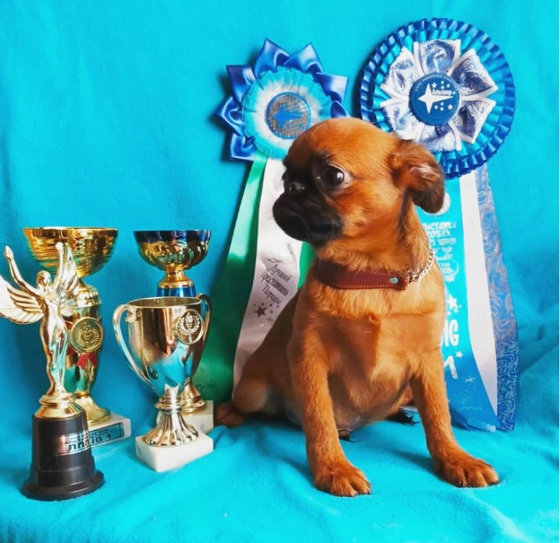 Мальчик пти-брабансон ярко-рыжий в черной маске, от хороших родителей.